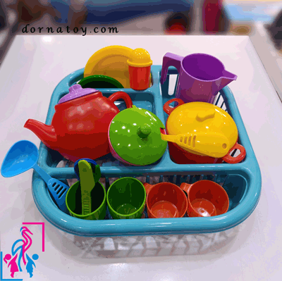 تمام قطعات پلاستیکی وسبک بوده و هیچگونه تیزی و ناصافی که باعث بریدگی دست کودک شود ندارد. این ست اسباب بازی شامل یک سبد آبچکان ، ظروف بشقاب ، لیوان ، قابلمه ، پارچ ، چاقو چنگال و… می باشد کودک می تواند این سبد آبچکان را در اتاق و یا در سینک ظرفشویی بصورت واقعی استفاده کرده و ظروف بازی خود را بعد از بازی شسته و در سبد قرار دهد.